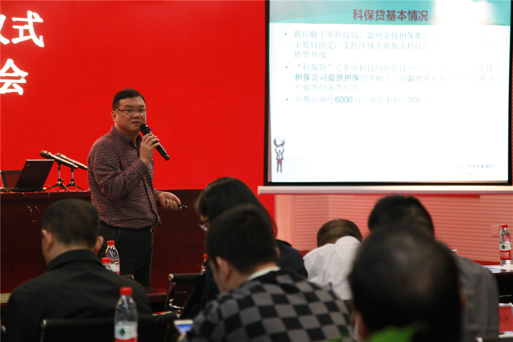 中国农业银行温州分行公司部总经理潘来青介绍“科保贷”产品