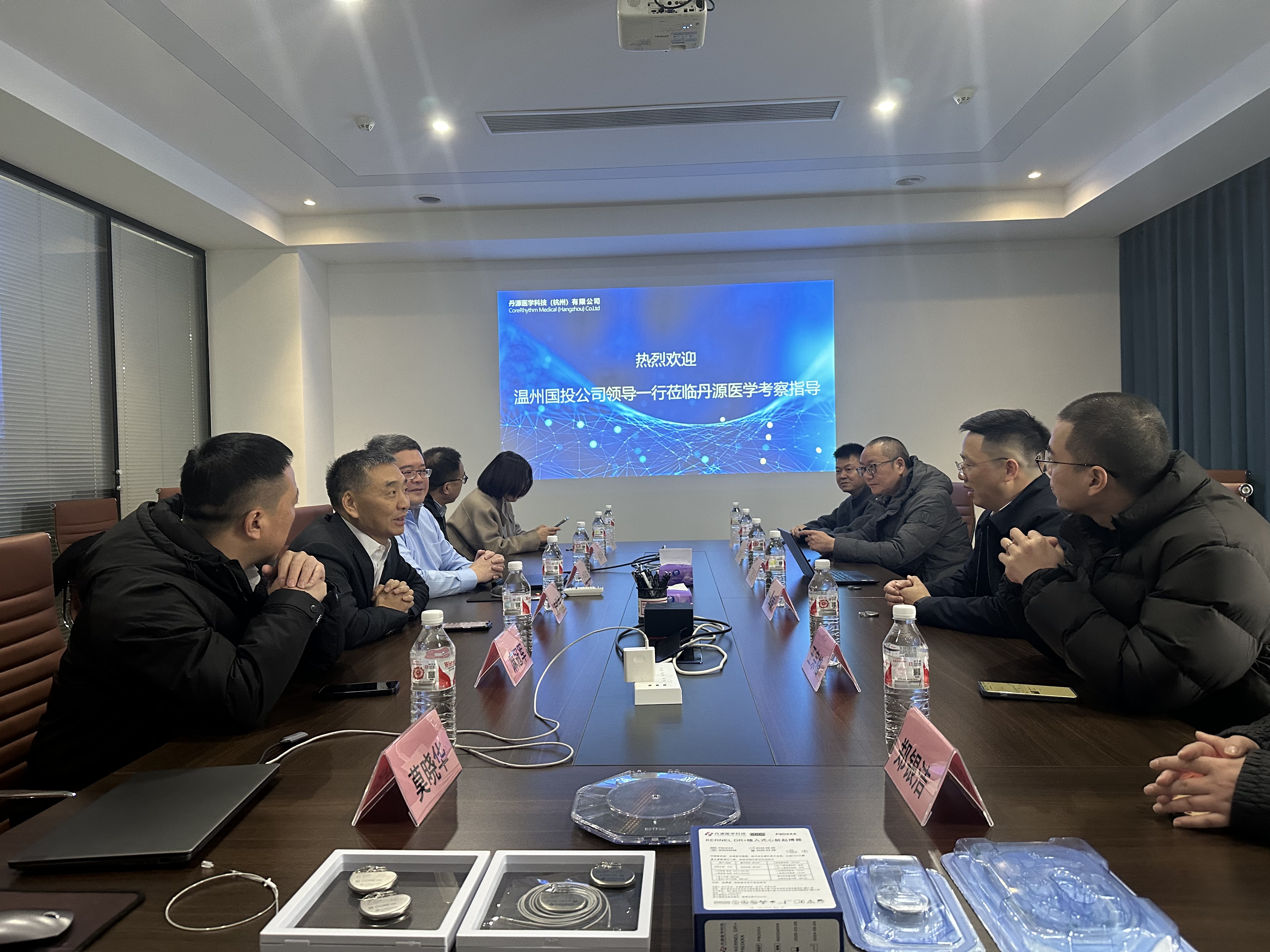 丹源医学科技(杭州)有限公司总经理沈丹波,向徐华南一行介绍了公司有源植入式心脏起搏器、心脏监测器产品研发和产业化情况。该公司拥有的全自主知识产权和全供应链核心产品,打破国际垄断和多项“卡脖子”技术,性能将达到国际领先水平。徐华南和市驻杭州招商引智办一行向丹源医学科技介绍了温创投基金、温州生命健康产业和瓯海生命健康小镇招商政策等情况,并诚挚邀请丹源医学科技将核心产品线落地温州,各方将合力提供优质服务保障。