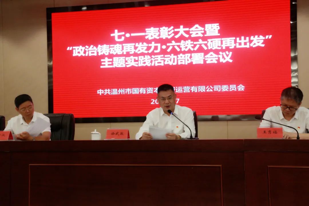 7月1日上午,威廉希尔体育召开“七一”表彰大会暨“政治铸魂再发力·六铁六硬再出发”主题实践活动部署会,不断推动变革型组织建设,塑造党员干部变革重塑能力,全面锻造一支有着铁一般纪律、钢一般意志的“国投铁军”。公司党委书记、董事长徐武敦出席上专题党课并作重要讲话,会议由公司党委委员、纪委书记韩包强主持。公司党委班子成员、副科级以上干部、所属各基层党组织书记、委员、“两优一先”代表、疫情防控事迹突出个人等参会。